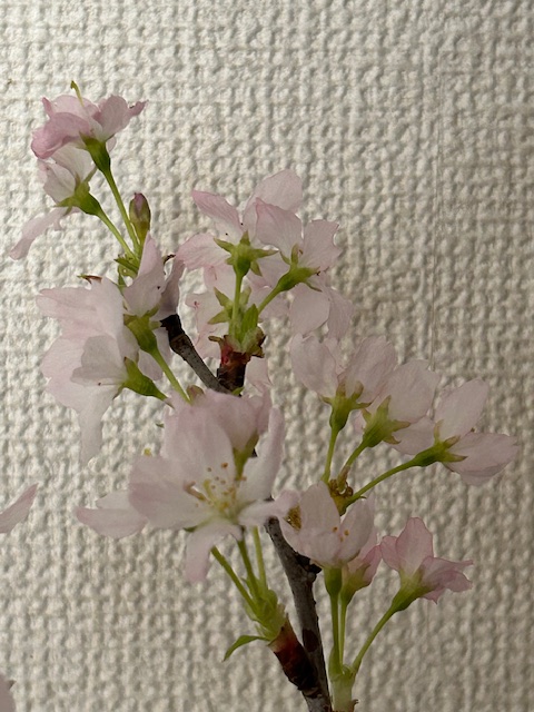 河津桜、寒桜などとともに、早咲きの桜の品種の一つ。通常の桜よりも早く3月中旬から自然開花する。ビニールハウスでの加温栽培によるものが、12月下旬から市場に出回り、正月飾りや早春のインテリアとして親しまれる。細い枝に薄紅色の小ぶりな花が群がり咲く。なお、歳時記には掲載されていない。