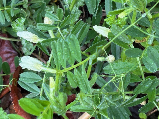 烏野豌豆(からすのえんどう)は、マメ科の蔓性の越年草で、野原や土手にピンク〜薄紫色の蝶のような形の花を咲かせる。シロバナカラスノエンドウは烏野豌豆の白花品種。突然変異や地域的な変異として現れる。花期は3~6月。なお、どちらも歳時記には掲載されていない。