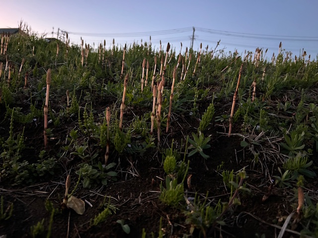 土筆(つくし)は、トクサ科の多年草である杉菜(すぎな)の胞子茎。先端の筆のような部分から胞子を飛ばして仲間を増やす。春の訪れとともに土手や畦道に群生する。土筆がたくさん生えている野原が「土筆野」。