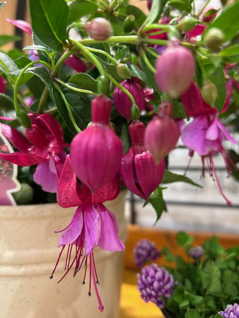 熱帯地方原産のアカバナ科の落葉低木。別名「釣浮草」。日本に園芸植物として本格的に導入されたのは大正時代で、主に温室で栽培される。初夏から夏にかけて、ピンクや紫の鮮やかな合弁花を下垂させる。