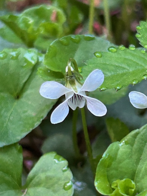 スミレ科の多年草。別名「如意菫(ニョイスミレ)」。水田の畦道、湿地、沢沿い、湿った林の縁などに自生する。晩春の頃、白地に紫の筋が入る花を咲かせる。日本原産の菫の中で最も花が小さい。「菫」の傍題。