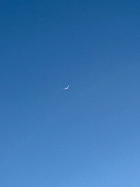 寒々とした真冬の空の三日月のこと。「冬三日月」の傍題。鋭利な刃物のような鋭い印象があり、凍えるような冷たさや寂しさが強く感じられる。写真は、令和8年1月22日の夕方撮影した三日月。