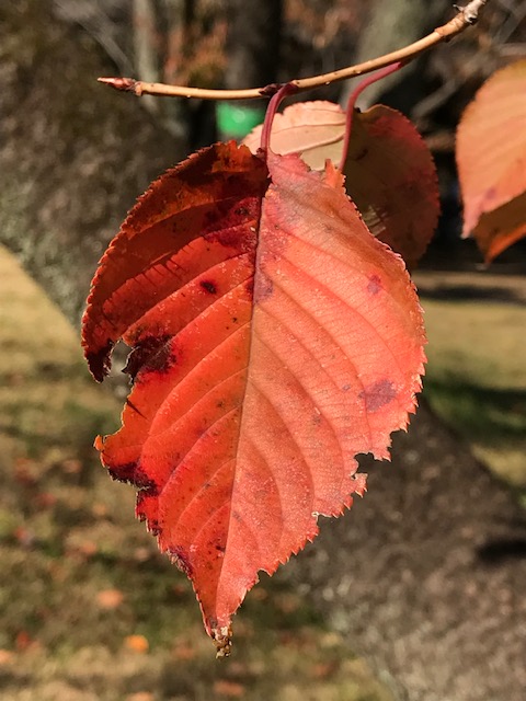 冬に入っても木の梢などに紅や黄色の葉が残っていることがある。辺りが枯れ色を深める中、日差しに映える残り少ない冬紅葉はことさら目を惹く。