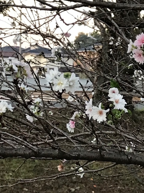 11月頃から1月頃にかけて咲く桜の総称。本来、冬桜というと、大島桜と豆桜の交配によって生まれた雑種のことで、初冬と春の2回の開花期があることから、四季桜と呼ばれることがある。白から淡いピンク色の小さな一重咲きの花を楚々と咲かせる。