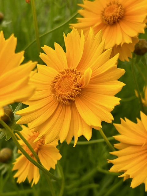 アメリカテキサス州原産のキク科の一年草。明治中期に渡来し、その後野生化。海岸、空き地、河川敷などに群生する。夏、黄色の一重咲きの頭花を咲かせる。近縁種であるオオキンケイギク(写真)は、繁殖力が高く在来種の生育地を奪ってしまうため、環境省の特定外来植物に指定され、栽培などが禁じられているという。
