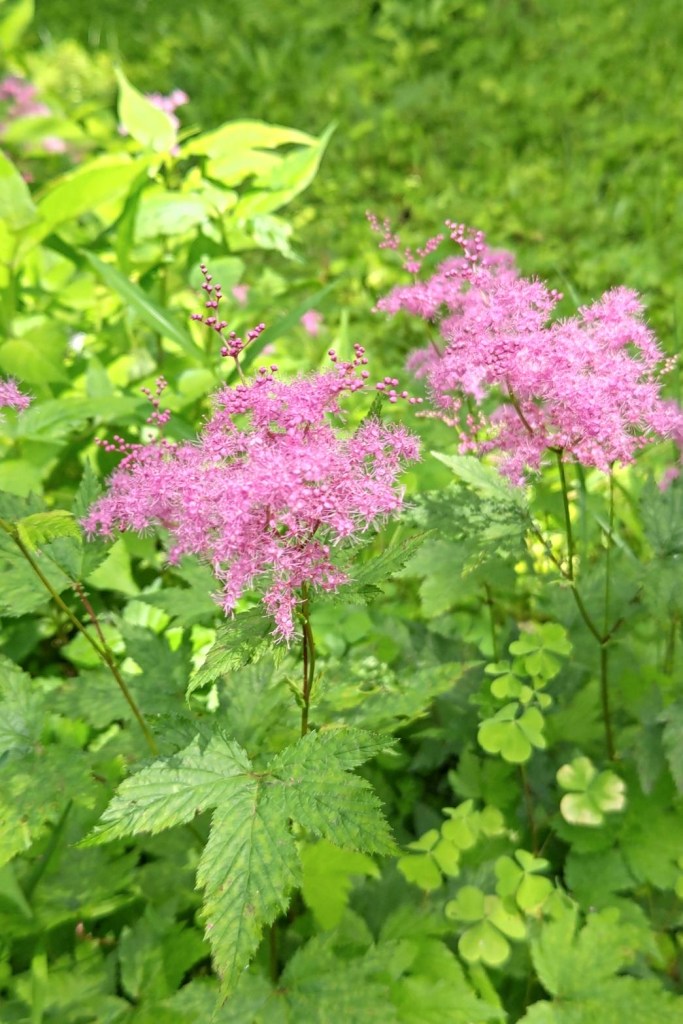 バラ科シモツケソウ属の多年草。日本固有種で、関東以西の本州、四国、九州の日当たりの良いやや湿った山野に自生する。7、8月頃、茎頂に集散状散房花序で淡紅色又は白色の小花を多数咲かせる。繍線菊(しもつけ)と似ているが、繍線菊が木であるのに対し、下野草は草本。