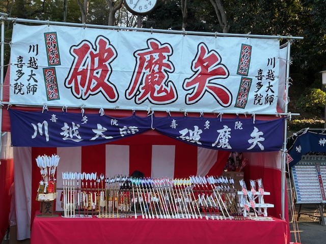 初詣の際寺社で分かたれる厄除けの弓や矢。宮中で正月に行われていた弓の儀式「射礼」に由来するという。元々、縄で作った輪を射る子供の遊びがあり、輪を「はま」、弓を「はま弓」、矢を「はま矢」と言った。後に、「はま」が「破魔」に通じるとして、前年に生まれた男児の健やかな成長を祈ってその弓矢を初正月に贈答するようになった。今は正月の厄除けの縁起物として神社で買い求め、お守りとして家内に飾る。