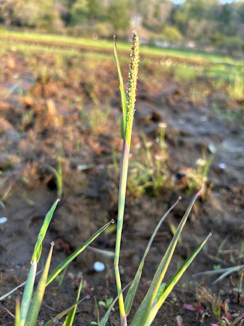 イネ科の一、二年草。全国の水田や荒地、野原などに自生する。晩春の頃、5、6センチの花穂に橙黄色の葯(やく)をつける。花穂を雀の担ぐ鉄砲に見立ててこの名がある。別名「雀の槍」「雀の枕」。