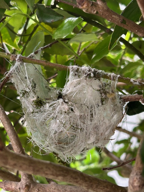 下の写真は巣の中に産みつけられていたメジロの卵(5月25日撮影)。