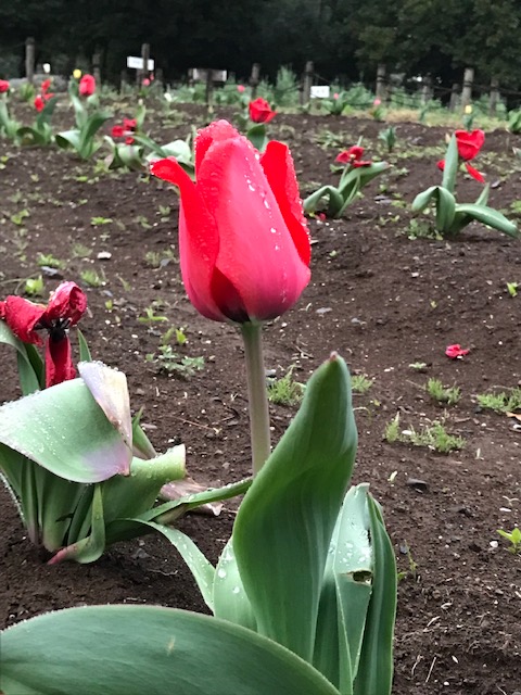 トルコ原産のユリ科チューリップ属の球根植物。16世紀以降オランダで品種改良が行われ、日本には江戸時代後期に渡来。観賞用として植えられ、全国の公園や庭先などでよく見かける最もポピュラーな花の一つ。晩春の頃咲く花の色は赤、黄、白、ピンクなど多様。花の形には一重咲き、八重咲き、ユリ咲き、フリンジ咲きなどがある。和名は鬱金香(うこんこう)。