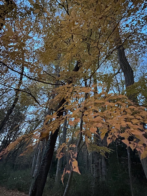 秋には、イチョウ、クヌギなどが黄葉(こうよう)するが、山毛欅(ぶな)の黄葉(もみじ)もその一つ。山毛欅はブナ科ブナ属の落葉高木で、日本各地の温帯から冷温帯の山地に自生する。秋には、黄葉が黄色から黄金色、さらに琥珀色に近い茶色へと変化する。