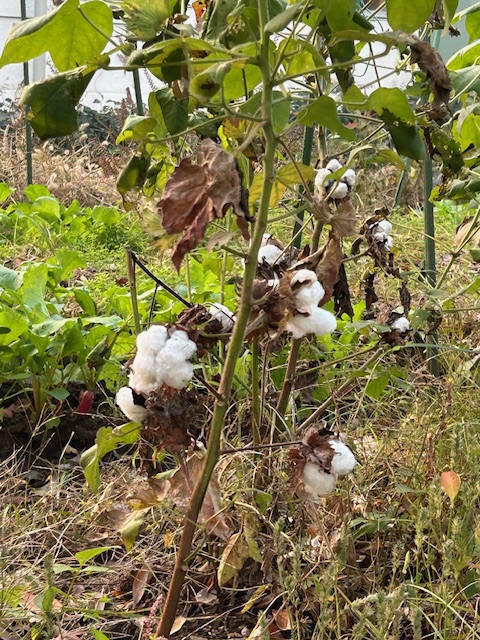 綿(わた)の実が熟して割れ、中から白い綿が吹き出すこと。「綿吹く」ともいう。コットンボー ルといわれる綿の実の形が桃に似ていることから、こう言われる。綿はアオイ科の一年草。夏に花を咲かせた後秋に実を結び、熟すと3つに裂けて白い綿毛をつけた種子を出す。綿の実から作られるのが「木綿わた」(冬季)。