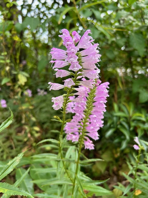 北アメリカ原産のシソ科の多年草。明治末から大正年代に日本に渡来。全国の公園などで栽培されているポピュラーな宿根草の一つ。晩夏から秋にかけて細長い四角錐の花穂を伸ばす。花色は濃桃色から白花までいくつかの品種がある。別名「カクトラノオ」。歳時記に夏の季語として掲載されている「虎尾草(とらのお)」はサクラソウ科の多年草で、別種の植物。