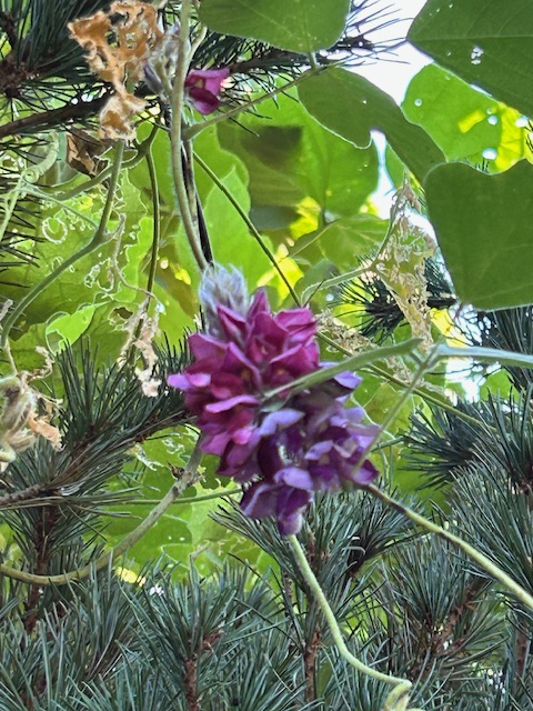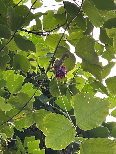葛は日本原産のマメ科の蔓性多年草で秋の七草の一つ。日当たりのよい山野に自生する。初秋の頃、密生する葛の葉の腋から花序を上向きに出し、紫紅色の蝶形の花が咲きのぼる。旺盛な生命力を感じさせる葉の茂りに潜んで咲くその花は、色鮮やかだが隠微な印象を与える。