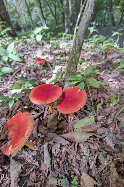 ベニタケ科ベニタケ属の茸の総称。「紅茸」といっても、色は茶から灰褐色、ピンクなどさまざま。ほとんどが辛く、食には適さない。赤いものが多いのでこの名がある。食用になるタマゴタケ(下の写真)も赤い傘をしているが、全く別種の茸。しかし、いずれも俳句では「紅茸」として詠むことができるだろう。