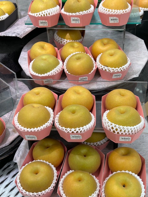 梨はバラ科の落葉高木。その果実は秋の代表的な果物の一つで、果汁に富む。日本の山野に原生していた山梨から品種改良され、古くから栽培されてきた。斑点のある黄褐色の果皮をもつ赤梨と緑色の果皮の青梨があり、それぞれ多くの品種がある。近年は、従来の長十郎、二十世紀に加え、甘味の強い幸水、豊水、新高などが栽培の主流となっている。最近では洋梨も普及してきた。