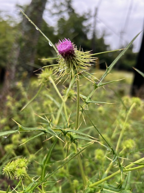 キク科アザミ属の多年草。山地のやや開けた草地に生える。初秋から仲秋にかけて、紅紫色の頭花を穂状又は頭状に密集してつける。狭義には、九州・四国の山地に自生するヤマアザミという種を指すが、広義には、全国の山地に自生するものを総称して山薊と呼ぶ。ノアザミが春に咲くので、単に「薊」といえば春の季語だが、タイアザミ、オニアザミなど夏から秋にかけて咲くものも多い。