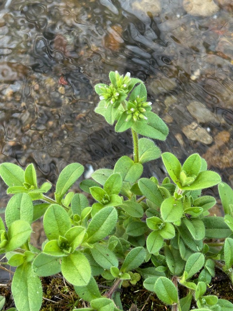 ナデシコ科の多年草。日本在来種のほか、ヨーロッパ原産の帰化植物オランダミミナグサがある。葉の形がネズミの耳に似ており、若葉が食用(菜)になることからこの名がつけられた。道ばた、畑などに自生し、晩春の頃五弁からなる白色の小花をつける。日本在来種のミミナグサは、現在では外来種のオランダミミナグサに圧倒され、道端などで見かけるのは主にオランダミミナグサの方である。