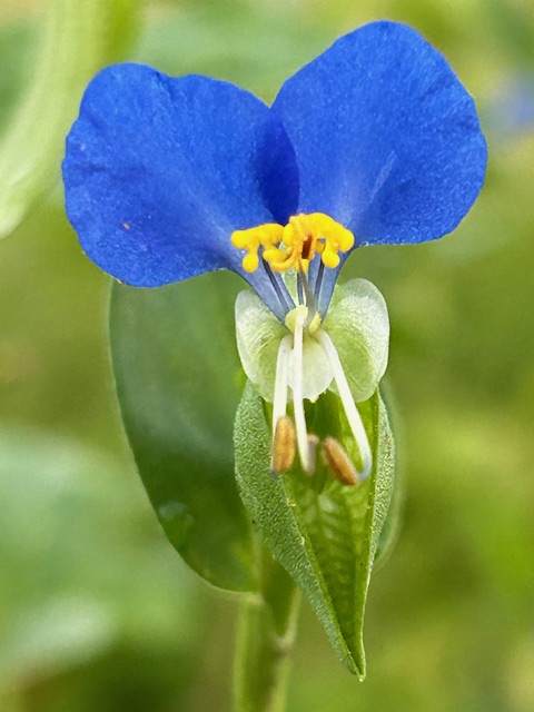 露草は、夏の暑さがピークを越える頃、気がつけば路傍のあちこちに花をつけているありふれた雑草の一つだが、その小さい花の混じり気のない瑠璃色には、造化の妙を感じる。小さな花の中に宇宙の精髄が詰まっているようだ。
